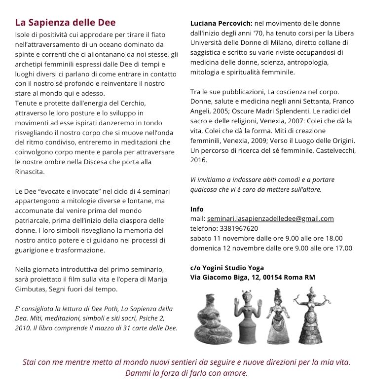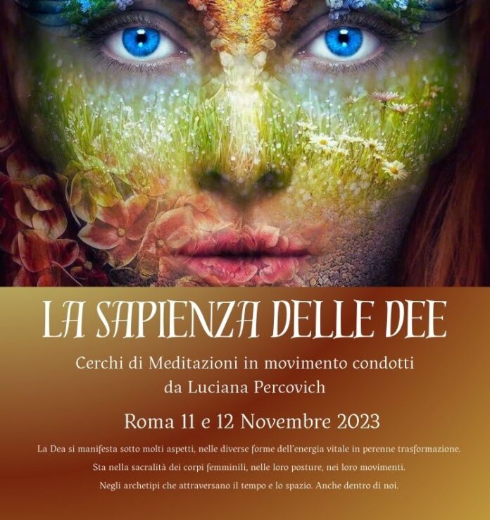 Cerchi di meditazione in movimento condotti da Luciana Percovich; incontro che si svolgerà in presenza presso Yogini Studio Yoga Via Giacomo Biga, 12 Roma