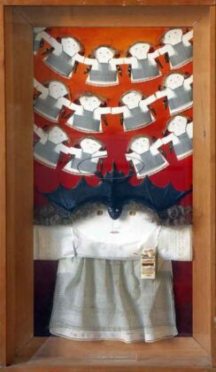 Insieme agli assemblage, in mostra viene presentata una selezione di disegni e collage su carta, in cui l’artista lavora sulla relazione tra immagine e parola per demistificare il sessismo espresso dalla cultura, la politica e la religione, dall’antichità al XX secolo.