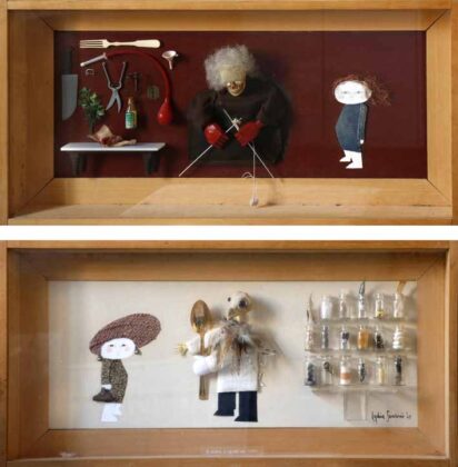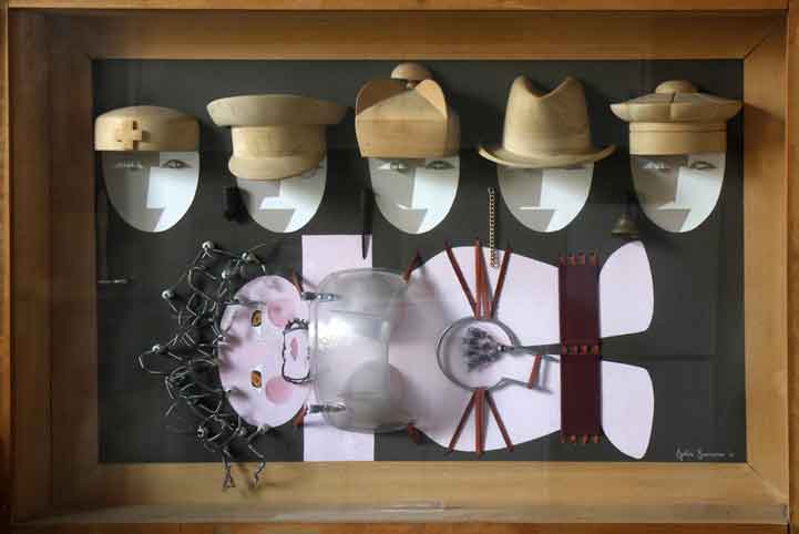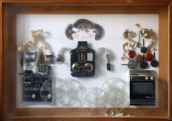 Lydia Sansoni preleva oggetti ordinari, casalinghi, e li trasforma in racconti allucinati sulla condizione della donna all’interno della famiglia borghese occidentale, con i suoi ruoli rigidamente codificati.
